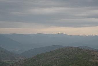 En el centro de esta foto, tomada ayer por la tarde desde el monte de Larués, puede verse la cima del Ori (Navarra) (primer 2.000 de los Pirineos desde el Océano Atlántico).