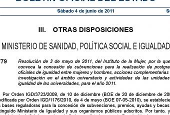 Subvenciones del Instituto de la Mujer para la realización de postgrados oficiales de igualdad entre mujeres y hombres, acciones complementarias a la investigación en el ámbito universitario y actividades de las unidades de igualdad de las universidades, para el año 2011