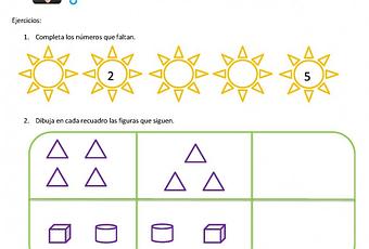 Ficha de aplicación con ejercicios matemáticos sobre las sucesiones, para trabajar con los niños de primer grado de educación primaria.