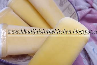 1- في الخلاط، تخلط المكونات الثلاثة حتى يصبح المزيج ناعمًا.2- يصبّ الخليط في قالب المصاصات.3- توضع القوالب في القسم المجمد للثلاجة و تترك الى ان تصبح المصاصات صلبة (4 ساعات واكثر).لاخراج المصاصات من القوالب تمرر القوالب بسرعة تحت ماء دافئ.