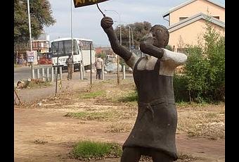 [Una de las esculturas que recuerdan el momento de la insurrección estudiantil en un parque-memorial inaugurado hace unos años en Soweto. / Foto: Porfinenafrica]].