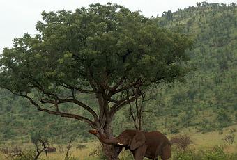 Otro encuentro espectacular fue el que tuvimos con los elefantes. Esta vez no íbamos en el polo rojo, sino en un camión 4×4 descapotado que conducía un alemán, y cuyo copiloto era un kilométrico rifle ("por si acaso" dijo cuando se le preguntó). Primero nos encontramos con un gran, viejo y solitario macho al que no gustó nuestra presencia cercana (al principio sólo movía las grandes orejotas como si quisiera imitar a Dumbo y salir volando de allí, pero en realidad las movía como aviso de lo que iba a suceder si seguíamos molestando a ese gruñó; finalmente nos atacó. Sólo durante unos segundos y decenas de metros, pero el susto fue cojonudo y el conductor tuvo que salir a toda pastilla de allí). Minutos después, fue una gran familia de paquidermos la que obligó a que paráramos el camión 4×4: cruzaban el camino por delante, y acabaron rodeando nuestro vehículo. Todavía recuerdo la sensación, una mezcla a partes iguales de miedo (tuvimos que estar en silencio absoluto, ¡ni toser siquiera!) y admiración por estar en medio de ellos.