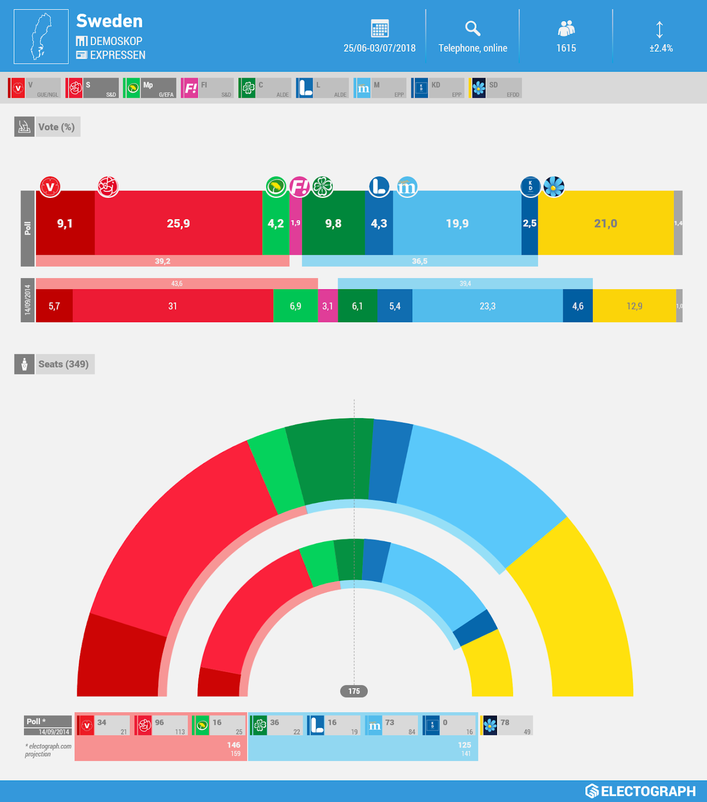 Parece evidente que los próximos comicios implicarán mucho más que un simple cambio de Gobierno. Al igual que en otras partes de Europa, aunque previsiblemente con menos virulencia, los resultados electorales servirán como termómetro para valorar la fortaleza de la extrema derecha en el continente. Pero la cita con las urnas también pondrá sobre la mesa qué tipo de sociedad aspira Suecia a ser en las próximas décadas y qué propuestas plantean las distintas fuerzas políticas para gestionar los retos migratorios y estructurales internos que enfrenta el país. Las encuestas presagian que el Partido Socialdemócrata del primer ministro Lövfen revalidará su posición como primera fuerza con un 25,9% de los votos, mientras que el Partido Moderado de Ulf Kristersson quedará en tercera posición con un 19,9% de los apoyos, ligeramente por detrás de los Demócratas Suecos —21%. Entre los demás partidos encontramos el gradual ascenso de La Izquierda —9,1%— y el Partido de Centro —9,8%— y un suave retroceso de los Liberales —5%— , Los Verdes —4,2%— y los Democristianos —2,5%—.