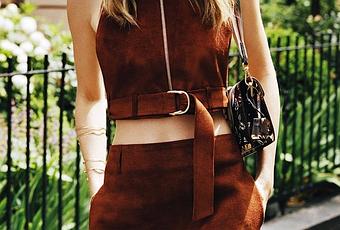 Es lo mas de lo mas, todavía no he visto ningún look que me defraude con un vestido de ante. Llévalo con sandalias romanas y un bolso negro, queda tan chic y estiloso que seras toda una it-girl. / Is so cool, I haven't see a look with a suede dress I don't like. Wear it with roman sandals and a black purse, it will look so chic and stylish you will be a completely it-girl.