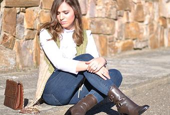 El look de hoy reúne tres de mis tendencias favoritas: los botines de media caña, inspiración Isabel Marant, las camisas 'decimonónicas', como dice mi marido, con reminiscencias del S. XIX, y el chaleco de flecos, un must temporada tras temporada.