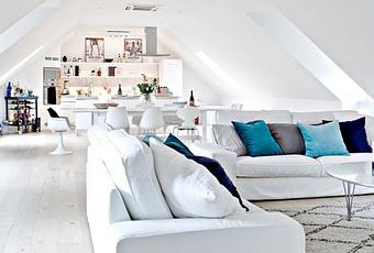 Como veis, aunque es un ático de bastantes metros cuadrados, el espacio de movimientos es lo más importante y ni la planta se ha dividido en multitud de habitaciones (sólo hay dos dormitorios), ni hay exceso de pasillo, ni tampoco el mobiliario lo ocupa todo.
