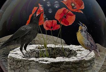 En bosquejo boceto cantan a dueto un cuervo y un ruiseñor. Ni silbidos ni graznidos ni colores, pompas de jabón y siete flores que paren nostalgias al vacío del Gran Hueco, donde todo cabe..."Viaje a las islas de Creta"Juan Lobo