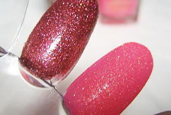 Estos son, de momento, los tonos que más me han gustado: el indescriptible 645 (es que no sé cómo describir este-estos color-es) y el 641 un rosa chicle con partículas doradas.