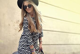 Os enseño un look que, por el estampado de la prenda, es bastante llamativo, al ser un motivo en zig zag y en contraste de blanco y negro. Se trata de un vestido casual con volante inferior y manga tres cuartos, comodísimo y súper llevable. En este caso lo combiné con elementos en negro, aunque, para hacerlo aún más llamativo se podría combinar con algún toque de color.El vestido es de la marca Sugarhill. La colección es muy femenina, pero relajada y sobre todo, divertida. Diseñada centrándose en los estampados, con prendas inspiradas en nuestros favoritos estilos clásicos con un toque moderno.