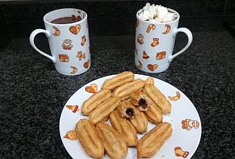 Para una tarde fría no hay nada mejor que una taza de chocolate caliente de suizo con unos mini churros rellenos de MAHESO .Los nuevos mini churros rellenos de chocolate, crujientes por fuera y con todo el sabor del chocolate en su interior apto para horno. Sin duda un dulce capricho.