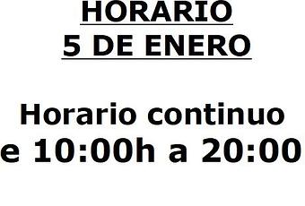 Mañana, miércoles día 5 de Enero, y para los que anden a ultimas horas con los regalos de Reyes, tienen horario continuo de 10 de la mañana a 20 de la tarde-noche. Y es horario continuo.Si os quedaba algo por comprar o de pedir a los Reyes, y os pilla por la zona de Bizkaia, creo que os interesará saberlo.