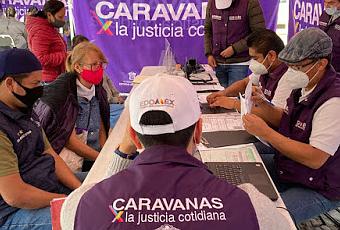 Papalotla, Estado de México.- Las Caravanas por la Justicia Cotidiana han beneficiado a 32 mil 236 personas con trámites y servicios jurídicos en 33 municipios visitados hasta los primeros días de julio.