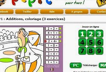 Vamos a emplear en clase un Juego en francés, pero perfectamente entendible, en el que coloreas los personajes haciendo pequeñas sumas.