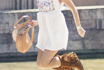 Besos monadas! It is another one of my easy wear dresses and easy to combine, another one of those outfits of the many I have on my cupboard. I love the detail it has, the embroidery on the front part of the dress. It reminds me of one of those dresses we wore when we were little girls.I didn´t like them at all, they were too formal and I preferred the more modern ones and not so tight… at least I wasn´t one of those children that are going around all the time on the floor… And as it was expected I took my Minnetonka boots with me on my journey, I was anxious to make another look with them again. I hope you like this one!!