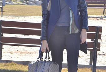 Este es el estilismo que escogí ayer. La verdad es que los abrigos en dos tejidos, que tanto se han puesto de moda esta temporada, me encantan. Este azul marino además me parece muy original por el corte que tiene. Aun no he probado a ponerlo con falda, para la próxima. Me encantan estas zapatillas de Alpe, son tan cómodas. Y ahora está muy de moda llevar zapatillas con ropa de vestir.