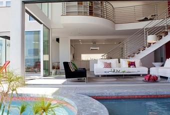 Esta semana sin quererlo me está saliendo viajera y hoy nos trasladamos a California. Wow! qué casa! con techos de vértigo y espacios como el salón, que se convierten en parte del exterior con ayuda de unas correderas. Decorada en blanco y gris, con los toques justos de color y madera, hacen de ella una casa acogedora, personal y fresca. Otro sitio perfecto para perderse una temporada ¿no creéis?