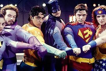 Eric Forman y sus amigos Kelso, Hyde, Fez, Jackie y Donna disfrazados de los Super amigos en la serie That '70s Show (1998-2006 FOX)