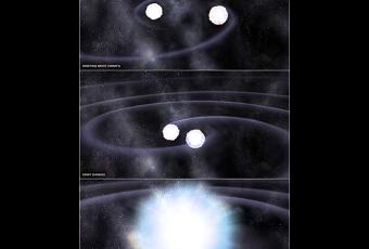Ilustración de la fusión de dos enanas blancas que produce una supernova Ia. Crédito: CSIC.