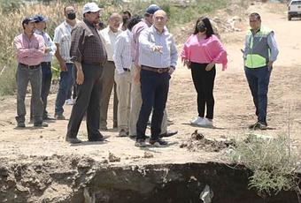 SLP. Él presidente municipal Enrique Galindo Ceballos realizó un recorrido por la obra en proceso de la colonia Los Silos justo donde aparecieron unos “socavones”. Son 120 metros lineales que pretenden remediar un problema de salud pública qué afecta a la población del sector.