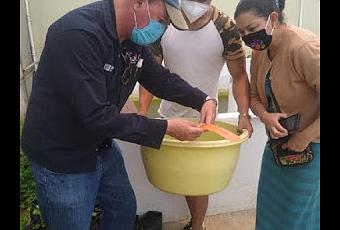 Roberto Rojas Martínez, junto con sus padres y hermano, recibió la supervisión en el trabajo de medición de organismos, aplicación de tablas y raciones alimenticias, para lograr una producción más eficiente, así como mejoras en la calidad de agua de estanques y en el desarrollo en crecimiento y peso de la tilapia.
