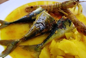 3º Cuando empiece a hervir añadir las patatas y cocer unos 10/12 minutos, a continuación añadir la caballa, las galeras y el perejil picado. Terminar de cocer.4º Dejar reposar unos minutos antes de servir.