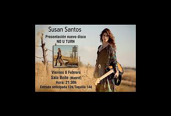 Ante su quinto disco la guitarrista y artista Susan Santos tiene previsto actuar el 8/2 en la madrileña sala Boite en el centro de Madrid. Previsto para el 11/1 No u turn es la quinta propuesta como disco; un trabajo producido por Juan de Dios Martín y masterizado en Los Ángeles por Peter Doell. El concierto que nos propone será una carta de presentación precisa de este disco y un repaso a su discografía.