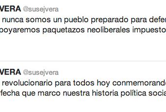 escribió Vera a través de su cuenta @susejvera.A lo que agregó: “Hoy más que nunca somos un pueblo preparado para defender nuestra patria. Jamás apoyaremos paquetazos neoliberales impuestos por la 4ta.Viva Chávez”.