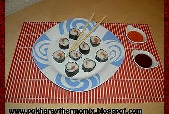 Pero tranquilos, que la receta para preparar sushi, en este caso con thermomix, la podéis encontrar en el blog de Carmen