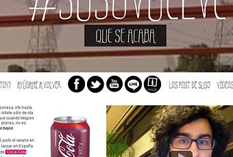 Coca-Cola recupera su sabor Cherry este verano y lo hace con una curiosa campaña; “Suso vuelve que se acaba” que nos cuenta la historia de Suso Castro, un gallego que viajó a Japón en busca de un amor, finalmente no correspondido, quedándose solo, sin un duro y sin billete de vuelta.