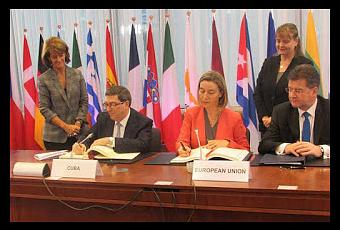 Representantes de Cuba y la Unión Europea (UE) firmaron este lunes 12 de diciembre, un Acuerdo de Diálogo Político y Cooperación, considerado el marco para el desarrollo de los vínculos sobre la base de la igualdad, la reciprocidad y el respeto mutuo. El documento fue suscrito por el ministro de Relaciones Exteriores de Cuba, Bruno Rodríguez, y la alta representante de Política Exterior de la UE, Federica Mogherini, así como por representantes de los países que integran el bloque comunitario, según PL.