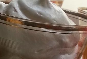 apenas empiecen a aumentar su volumen, volcar el caramelo en forma de hilo, batiendo constantemente