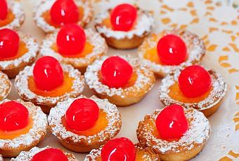 Justo antes de servir, colocar la guinda (pues si lo hacemos antes, se moja el azúcar glacé y pierde su encanto)