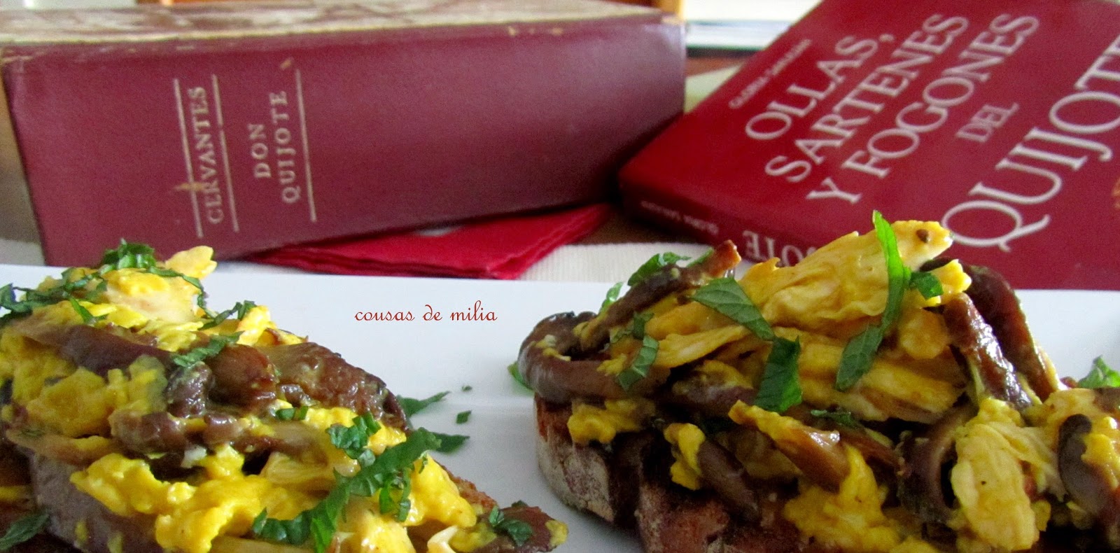 Ya que hoy se conmemora el día del libro y el aniversario de la muerte del creador del Quijote, nuestra novela más universal... es una buena ocasión para compartir una receta que tiene un titulo muy evocador de esta obra, no en vano el nombre de Dulcinea, está presente en muchas de sus páginas. Confieso que cuando leí lo de suspiros, pensé en algo dulce, pero no... es una tosta salada de lo más sencillo, y desde luego... está para suspirar!