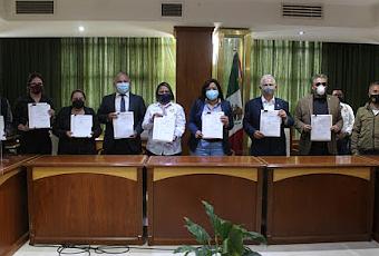 Texcoco, Estado de México.- En un acto de buena voluntad y cordialidad, en la sala de cabildo del Ayuntamiento de Texcoco se firmó el convenio salarial y de prestaciones 2021, con los representantes del Sindicato Único de Trabajadores del Estado de México y Municipios (SUTEyM), refrendado el compromiso de trabajo por la atención y servicio a favor de los Texcocanos.