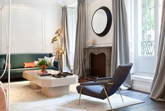 Al otro lado del salón la diseñadora ha colocado otro biombo que aunque no hace las veces de elemento separador aporta simetría al espacio.