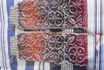 Éstos son mis progresos swapetineros hasta la fecha. Sigo sintiendo que podría trabajar más rápido si no fuera por el cuidado que hay que poner al tejer las dos hebras de hilo, pero también noto que mi velocidad mejora a medida que adquiero soltura.