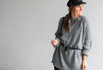 Sweater dress, el jersey que se convierte en vestido Los sweater-vestido son una de las tendencias de este invierno. Sweaters calentitos, cómodos y versátiles que se alargan por encima de la rodilla permitiéndolos llevar como un vestido. Combinan a la perfección con botas y botines. Botas XXL, over the knee. Podemos llevarlos con camisas por debajo asomando el cuello de la misma si el sweater-vestido no es de cuello vuelto, con medias tupidas tipo legging y en cuanto a colores se puede llevar dentro de la misma paleta cromática o bien jugar con los contraste del mismo en los complementos. El cinturón también se convierte en un must have del momento para marcas nuestra siluetaa, dandole un aire cool y sofisticado al outfit, tanto a la cintura de pantalones de talle alto como en faldas y sweater de punto y como no de los vestidos, sobre chaquetas y blazers. En el look de hoy os muestre¡o este sweater-vestido de punto gordito de ochos en color gris, que combiné con cinturón para marcar un poco más la silueta, aunque suelto doy fe de que queda de vicio también y resulta ante todo cómodo. Complementos en negro completan el look, como gorra marinera, collar de flores, botas de terciopelo y mochila. ¿Qué os parece el resultado? Espero que os haya gustado. Besos y feliz Lunes
