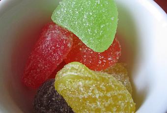 El resto de sabores de gominolas de frutas las piqué con un cuchillo y las añadí por encima de cada capa de merengue que ponía.