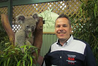 Este nuevo día en Sydney amaneció bastante cubierto y con niebla lo que no nos hacía presagiar nada bueno en el viaje que íbamos a realizar a las Montañas Azules. Para ello habíamos contratado desde casa a través de internet una pequeña agencia cuyo conductor y guía, Alejandro, era un chileno que llevaba cerca de cuarenta años residiendo en Australia, y que puntualmente nos pasó a recoger por nuestro hotel apenas amanecido el día. Tal como habíamos convenido, una de nuestras prioridades más importantes era la de conocer la fauna autóctona australiana y disponer de tiempo suficiente para, a parte de observarla, poder interactuar con una parte de esos animales. Y para ello acudimos al Parque Autóctono "Featherdale Wildlife Park" y que también es santuario de koalas.
