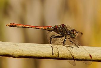 "Especie característica de las zonas áridas del norte de África y de Oriente Medio cuyas poblaciones están extendiéndose hacia el norte. De esta forma, es una especie que ya se encuentra presente en zonas costeras del sur y este de la Península Ibérica. No obstante, citas tan norteñas y de interior como esta de Monzón (HUESCA), son toda una novedad en cuanto a la expansión de esta libélula. La característica que los distingue de otras especies del género Sympetrum, son las líneas negras que presentan machos y hembras en los segmentos abdominales 2 y 3, tal y como se aprecia en esta estupenda imagen de Toni Estany"