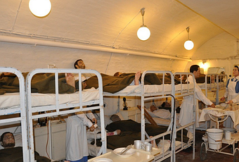 Hoy en día se hallan en su interior cientos de figuras de cera y materiales que emulan el antiguo hospital durante la guerra: médicos, enfermeros, soldados heridos, militares, literas... tan solo falta el olor a podedumbre, putrefacción y hacinamiento, y el bullicio y el correcalles al llegar los heridos, que sobrepasaban ampliamente la capacidad del hospital (con unas 50 camas, aunque llegaba a alojar más de 500 de heridos) hasta el punto de tener estos que compartir cama o estar en el suelo en cualquier rincón, a la espera de ayuda médica o la muerte en el peor de los casos. A día de hoy aún funciona el viejo sistema de ventilación, aunque debido al gran ruido que genera tan solo se activa durante la noche.