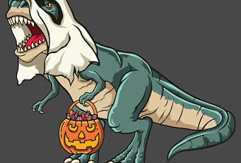 Ya tenemos Halloween sobre nosotros y más allá de entrar en un absurdo debate sobre su significado y celebración, queremos destacar su reconocible iconografía. Calabazas, disfraces de mucho susto y caramelos no pueden faltar en tan señalado día. Y algo así es lo que muestra Threadless en este diseño de camiseta con un tiranosaurio como protagonista. Puedes conseguirla por unos veinte dólares aquí.