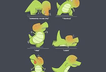 Los bracitos del tiranosaurio son un tema recurrente a la hora de hacer burlas y mofas sobre el rey del Cretácico. En esta ocasión, este diseño de camiseta para Threadless de la ilustradora austriaca Anna-Maria Jung muestra como sería una sesión de yoga del más temido de los dinosaurios, resultando un "quiero y no puedo" constante. Se puede comprar aquí por unos quince dólares.