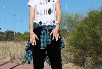 T-shirt- Primark ( a friend´s present).Shirt- Stradivarius (old).Trousers- Mango (old).Shoes- Zara (old).Necklace- Adamarina alhajas.En el look de hoy os quiero enseñaros una camiseta super chula con el mensaje " I am a fashion blogger" que me ha regalado una compañera de trabajo, Victoria. Victoria es profe de inglés como yo y una gran fan del mundo blogger .En cuanto la hablé de mi blog personal el año pasado en la comida de principio de curso, se hizo seguidora; también ella tiene un blog precioso con los niños de su clase. Pichad aquí y os llevará directos a él.Muchas gracias por el regalo, compi! me hizo mucha ilusión.