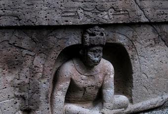 Llegué al sitio de Comalcalco a las 10hs y como el clima estaba horrible fui la primera en entrar. Comalcalco o Joy Chan -su verdadero nombre- es una ciudad maya contemporánea de Palenque y es única porque fue construida con ladrillos y cal de la concha de los ostiones. Eso la hace parecer más moderna. Al no tener piedras usaron ladrillos recubiertos con estuco. Allí se encontró un ladrillo con una inscripción muy extraña, algunos creen que es una profecía.