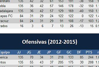 Les comparto la tabla general histórica del futbol mexicano del 2012 al 2015, ofensivas, defensivas.