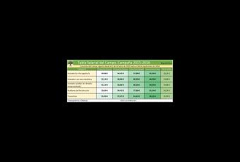Los salarios de este año suben el IPC (que estaba en un 2,2% teniendo en cuenta el periodo de septiembre de 2017 a septiembre de 2018) más un punto. Esto se traduce en un incremento del 3,2% para la actual campaña. Así, un vareador pasará a cobrar 53,42 euros por jornal, mientras que un vareador de máquina recibirá un salario diario de 55,83 euros. El convenio se ha firmado para cuatro años, contando esta campaña, por lo que estará vigente en la actual (2018-2019) y las de 2019-2020; 2020-2021 y 2021-2022. Para las tres campañas últimas se aplicará una subida máxima de un 2% y una subida mínima de un 1%. Es decir, que si el IPC sobrepasa el 2%, la subida será sólo del 2% y si baja del 1%, la subida será del 1%. En el caso de que el IPC esté en mitad de esa franja, se aplicará la subida del IPC.