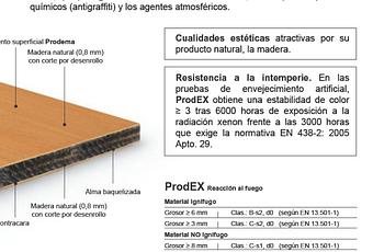 - Chapas de madera: Chapas de madera impregnadas de resina empleados como cara vista con la misma función y en lugar de un laminado HPL. Puede ser lisa o gofrada.