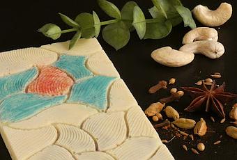 Cuando hayamos atemperado el chocolate le añadimos los anacardos y polvo 5 especias, mezclamos y vertemos en el molde de silicona, procurando que cubra el fondo, extendiendo bien, damos unos pequeños golpes contra la mesa, para repartir bien. Dejamos enfriar a temperatura ambiente y luego llevamos a la nevera 30-40 minutos o hasta que cristalice.