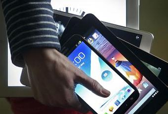 Del iPad de 9,7 pulgadas a un móvil de 5,5. / GORKA LEJARCEGI (EL PAÍS)